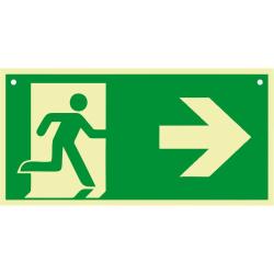 - Sortie de secours / secours (vert) : Par exemple : Sortie de secours à gauche, Poste de secours.